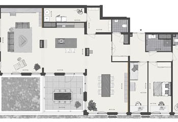 Het appartement is maar liefst ruim 25 meter breed. Door de vele ramen ervaar je het buitengevoel tot diep in de living. De Goudenbeuk heeft twee royale terrassen die beide grenzen aan sedumdaken. Kijk uit over het Sint Bavo-park en geniet met een heerlijk glas wijn van de omliggende natuur, tot het terras oranje kleurt bij de ondergaande zon.