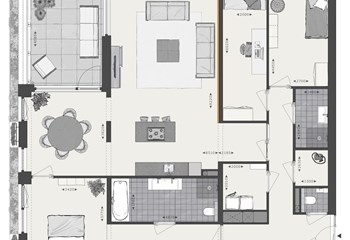 Deze appartementen van bijna 150 vierkante meter beschikken over een riante living van maar liefste 60 m2. De zeer grote raampartijen bieden een prachtig groen uitzicht. Alle appartementen tellen drie slaapkamers en twee badkamers, waarbij de masterbedroom een badkamer en suite heeft en een ruime inloopkast.